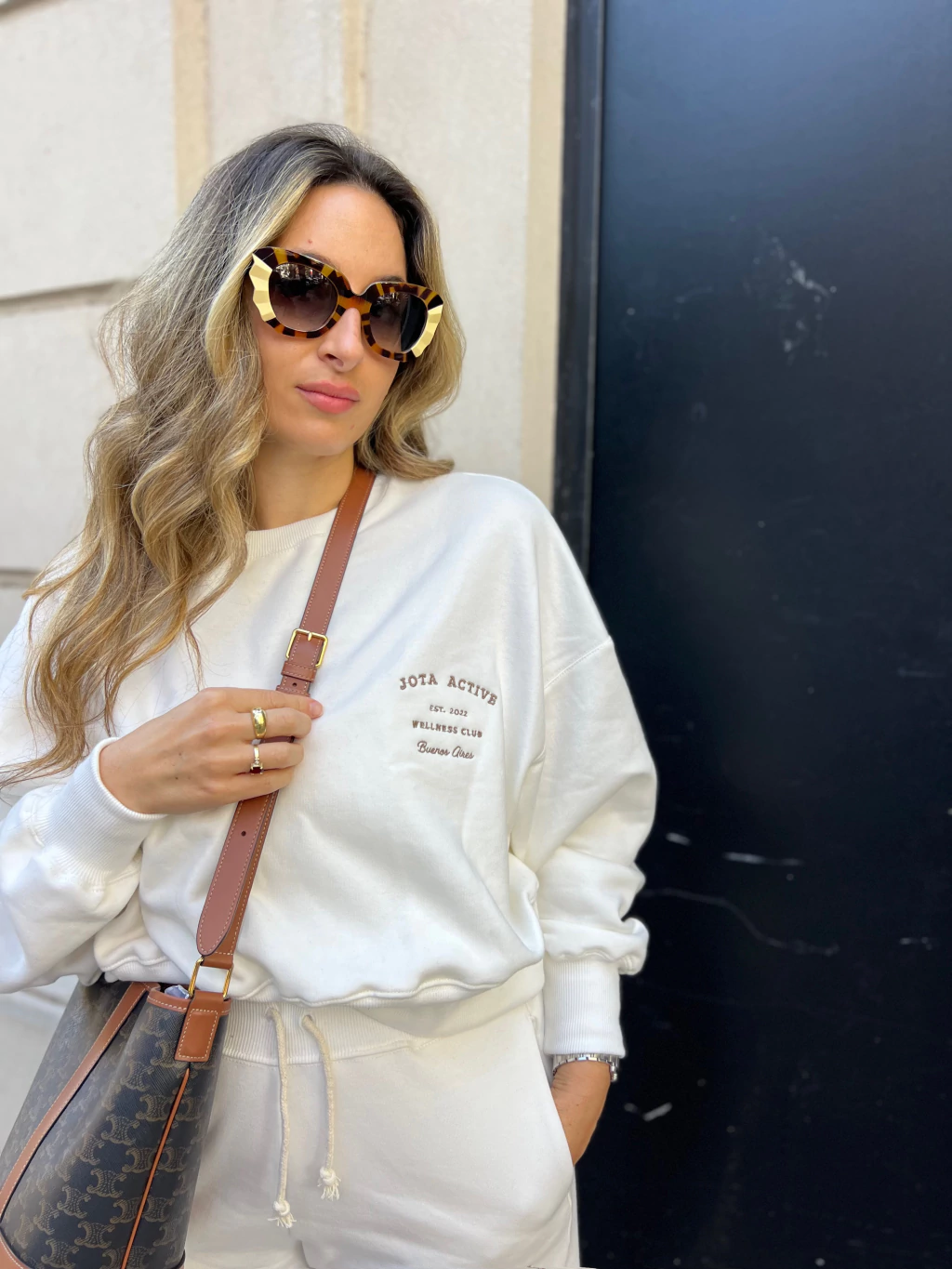 Buzo de frisa súper suave y calentito estilo crop y oversized. Con cuello a la base, puño ancho y cintura en tela rib. Tiene un corte cancherisimo, más corto del delantero, a juego con nuestro Pant Lita, pero también queda perfecto con nuestras calzas, elegí vos con que llevarlo.
