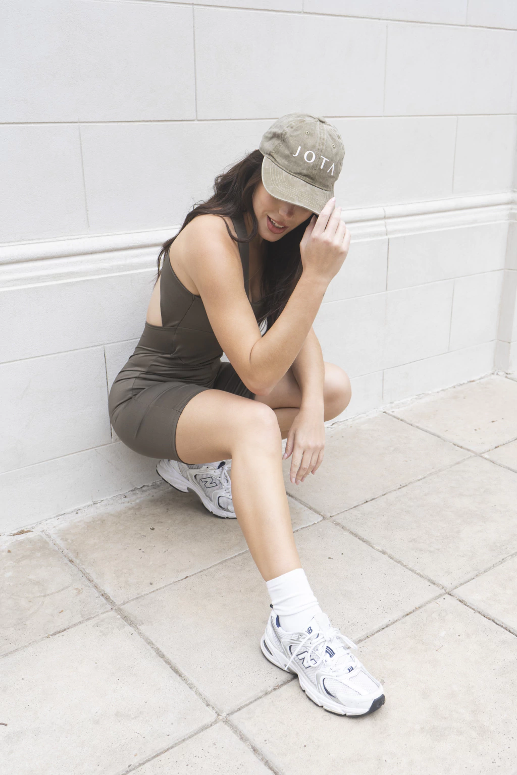 La espalda queda completamente descubierta, con breteles cruzados y un recorte en pico en V que estiliza y alarga visualmente la figura. Este mono es una declaración de confianza y movimiento.