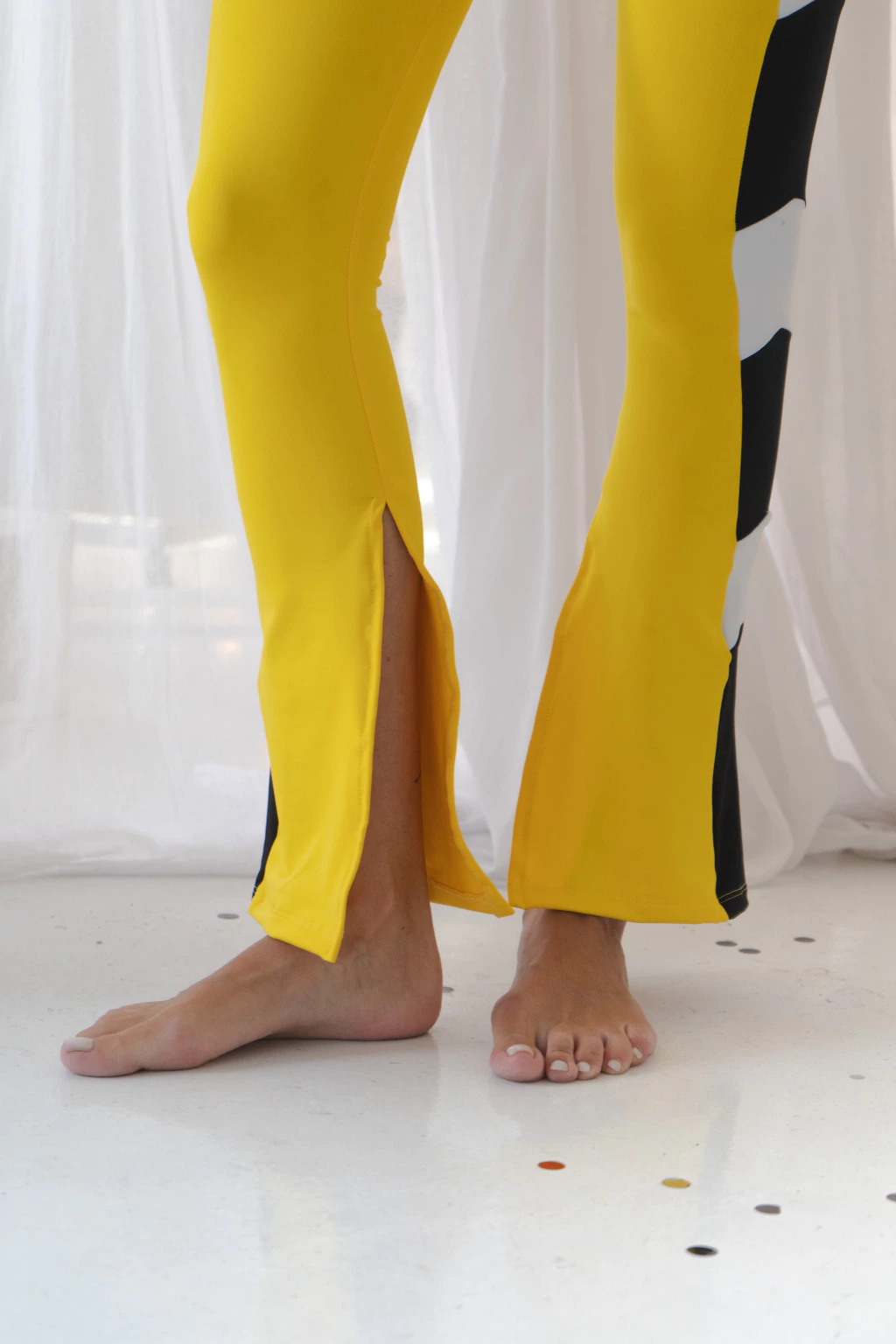 Su diseño lateral en contraste, afina la figura. Esta generado a partir de recortes del mismo tejido en diversos tonos, cosidos entre si, asegurando la forma y el color del tramado (no es sublimado)